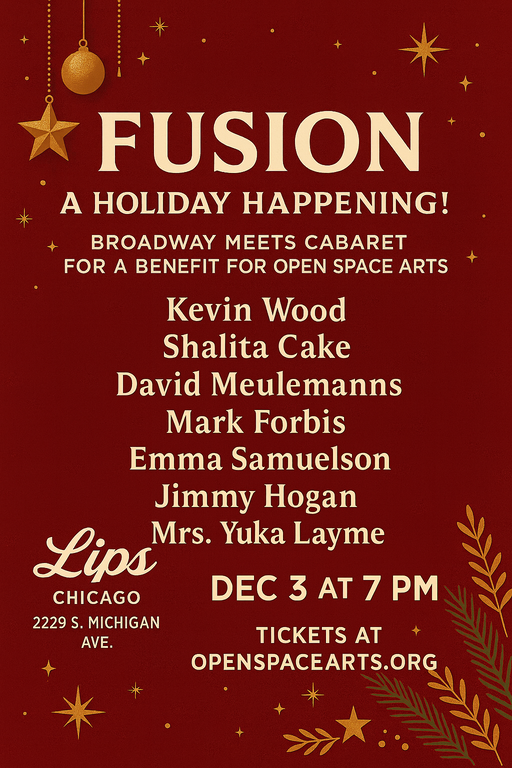 Open Space Arts (OSA) is thrilled to announce the launch of FUSION, a brand-new performance series blending the energy of Broadway with the intimacy of cabaret. The inaugural event, “FUSION: A Holiday Happening!”, will take place on Wednesday, December 3, 2025 at the iconic Lips Chicago (2229 S. Michigan Ave.).