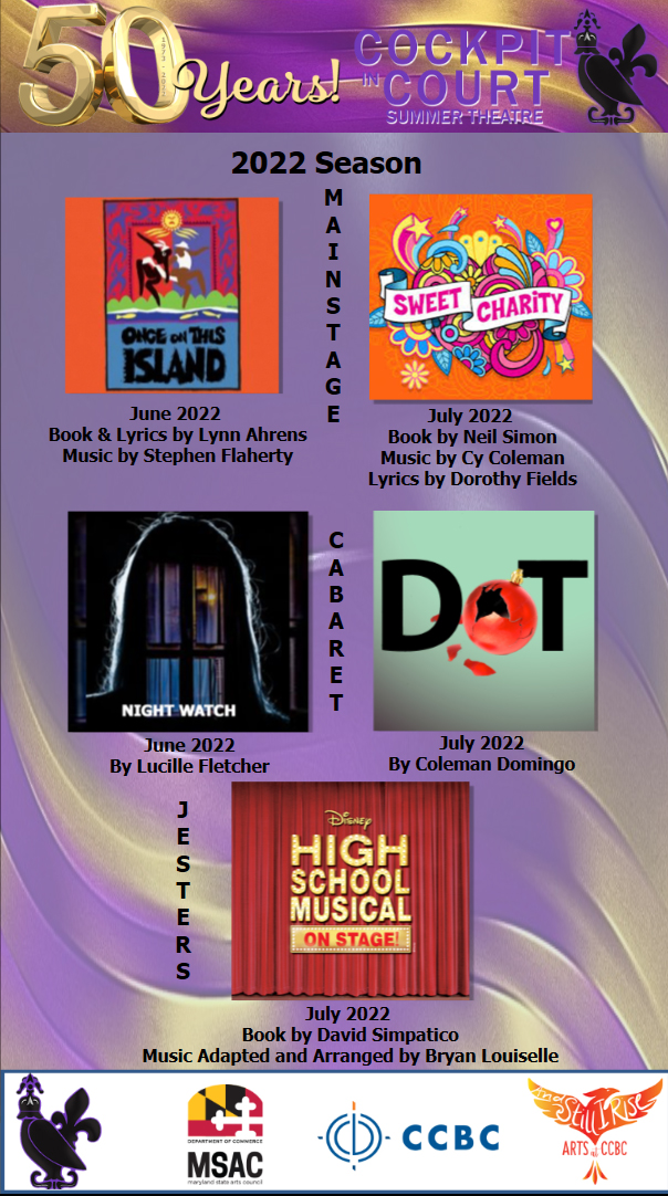 Cockpit in Court Summer Theatre is supported in part by the Maryland State Arts Council. To discover more about the Maryland State Arts Council and how they impact Maryland, visit msac.org.