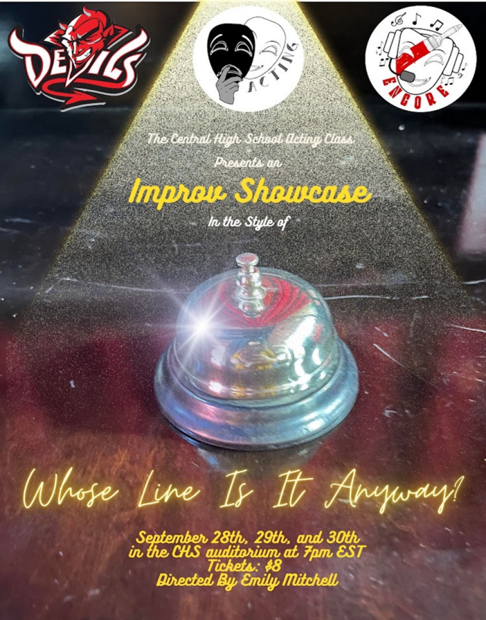 Emily Mitchell is the brand new Theatre Director at Central High School. She received a Bachelors of Arts in Theatre and a Minor in Arts Administration from the University of Montevallo. She currently has no directing credits, however, she will be adding many, many directing credits very soon. Her acting credits include A Midsummer Night’s Dream, The Ballad of the Mississippi River, Septic: A Devised Play, and the Alabama Premiere of The Lightning Thief: The Percy Jackson Musical. Her film appearances include Rock-A-Bye, Empty Handed, and I Think I’m in Love With You. She is so so excited to share her and her students’ work with you all, and she hopes you all enjoy a good laugh with them.