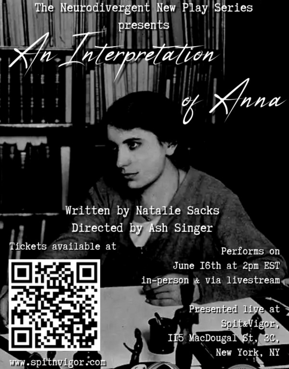 The Neurodivergent New Play Series is a curated production of spit&vigor. Founded in 2015, spit&vigor is a non-profit theater company devoted to the development of new plays and spirited, innovative productions of existing work. Their small roster of productions has been award winning and critically acclaimed, praised as “darkly humorous, deliciously ghoulish”, “wrenching and visually eloquent”, "irresistibly dramatic" and "legitimately upsetting" by the New York Times. In collaboration with theater company Theatre4thePeople, spit&vigor was the recipient of the 2015 New York Innovative Theater Outstanding Premiere Production of a Play Award for their very first production in a historic chapel at The West Park Presbyterian Church, which included an Artist Support Grant from the Donn Russell Fund. spit&vigor has since gone on to earn The Players Theater Off-Broadway Artistic Residency, The Center at West Park’s Artist Residency, IRT's 3B Residency, The Davenport space grant, and The Times Center space grant.
