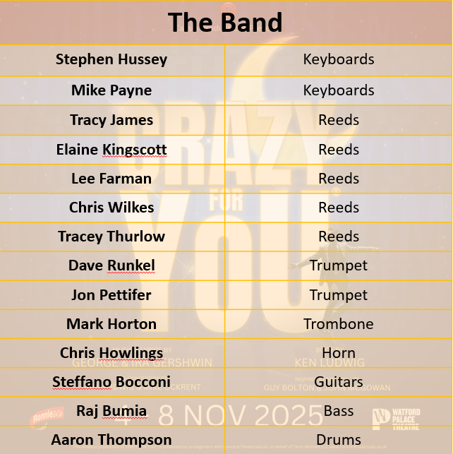 So sit back, imagine the camera rolling, and let yourself be swept away by the glamour, the comedy, and the glorious music of Crazy For You. Thank you for supporting local theatre, you keep the lights shining and the stories alive!