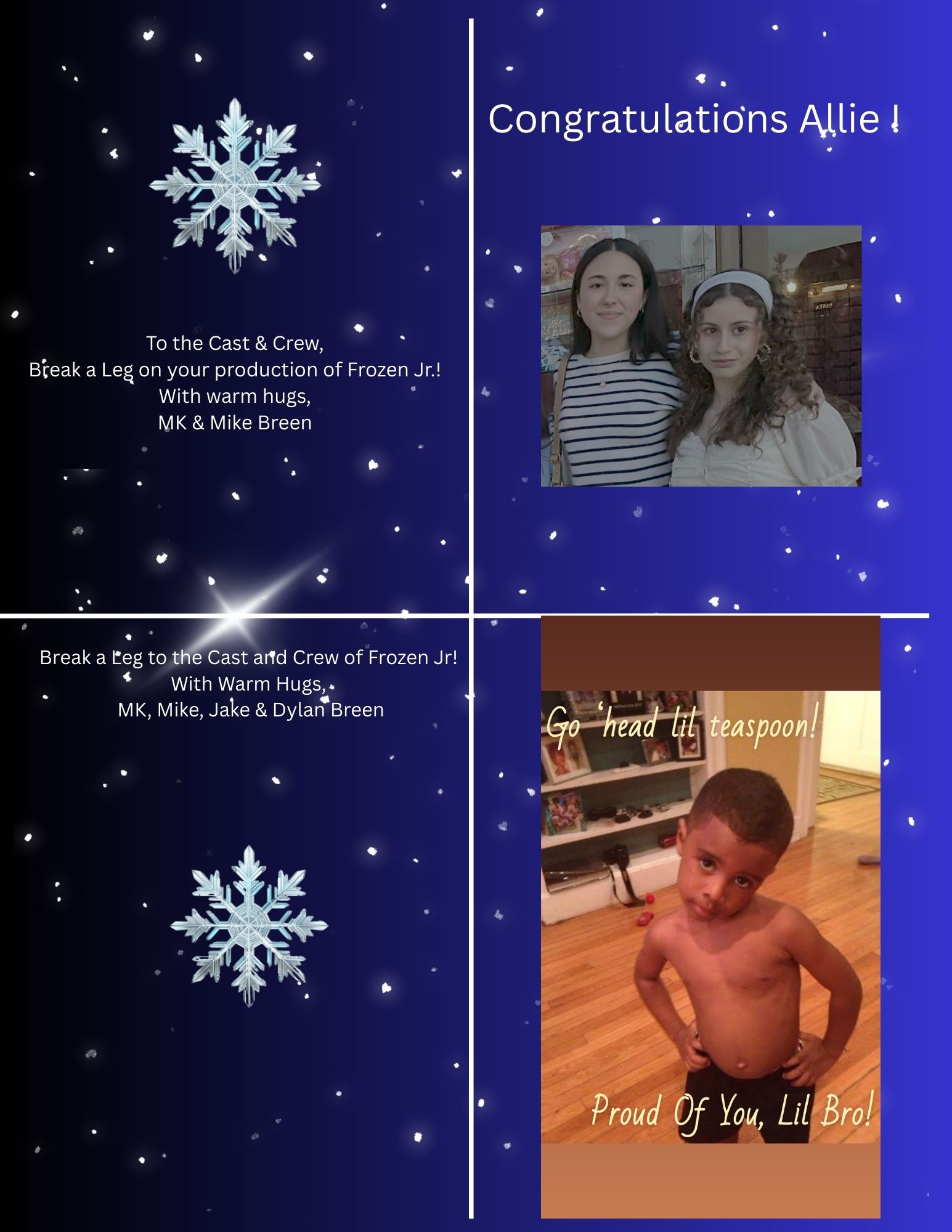 Johnny is a senior at Iona Prep and it is his first time being a part of the Prep Players. Johnny would like to thank the entire cast and crew, especially Jordan, Jess, Halle, Tommy, and Noah for making his final winter performance such a memorable experience!