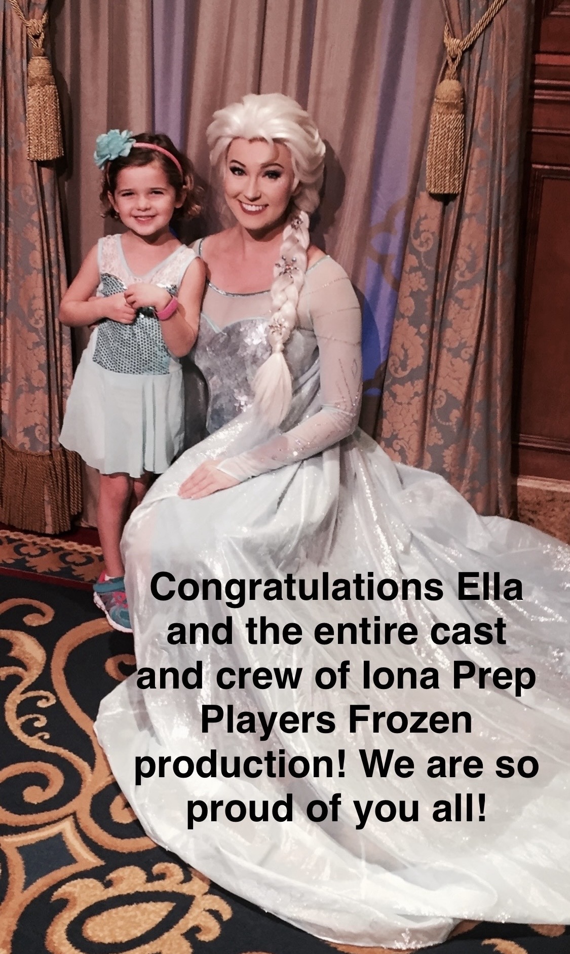 Carina is a freshman at Maria Regina High School, and this is her first year with the Iona Prep Players. Although she hasn’t done an Iona show before, she has performed in ‘Finding Nemo Jr.’ and ‘Annie Jr.’ at Annunciation Elementary School (Class of 2025). Carina would like to thank everyone who made the Iona Prep Players ‘Frozen Jr.’ production possible!