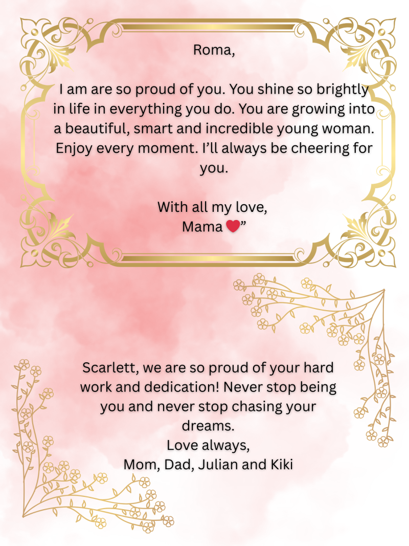 In her free time she enjoys swimming and baking, and hanging out with friends. Tessa wants to thank her family and friends for their support.