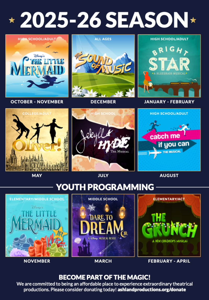 Jen Kroshus - Cinderella's Mother/Granny/The Giant Jen Kroshus is excited to return to the Ashland stage this summer! Recent credits include Matilda, Joseph...Dreamcoat, and Shrek. When not performing, she’s often busy behind the scenes or working on costumes for Ashland Productions. Her love for theater extends beyond the spotlight, rooted in a deep appreciation for the creative collaboration that defines the Ashland community. She’s especially grateful to her family for their unwavering support.