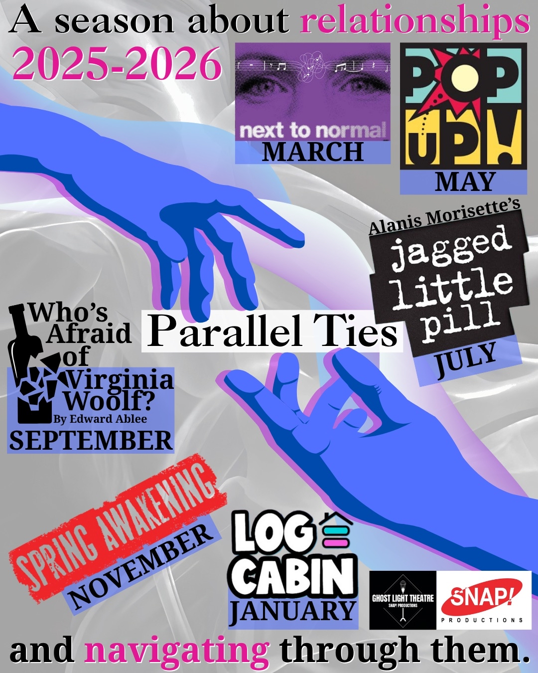 This show represents a group of passionate people willing to take a risk, work hard and pursue the challenge of doing something new. Be curious with us! Be curious and without fear. Be present and enjoy our experiment. We love that you are here and truly hope that you will leave with something that resonates for some time. If you are impacted by the show (in a positive or negative or any other way) please email me to discuss artisticdirector@snapproductions.com. As artists, we look forward always and challenge ourselves daily, to see life and experience the best and the worst it has to offer.
