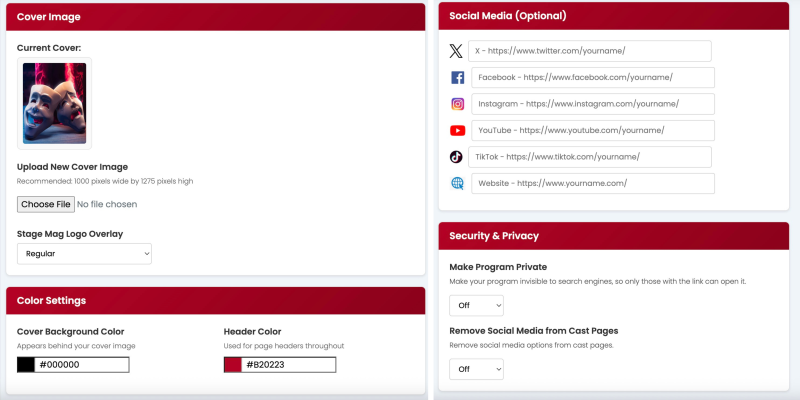 Designed for school productions, we've added two new options... You can now mark your program as 'Private', which will automatically add tags to tell Google to not index or cache your program so only those with the link/QR code can view it.