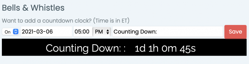 Want to countdown to your curtain time? When to turn off phones? To a Stream?