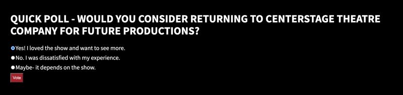 Looking to poll your audience? You're in luck, because BroadwayWorld has just developed a quick and easy way for you to receive immediate feedback. Simply add a Quick Poll to the end of your Stage Mag and gather insight on your crowd's theatre-going experience or pose questions about your show!
