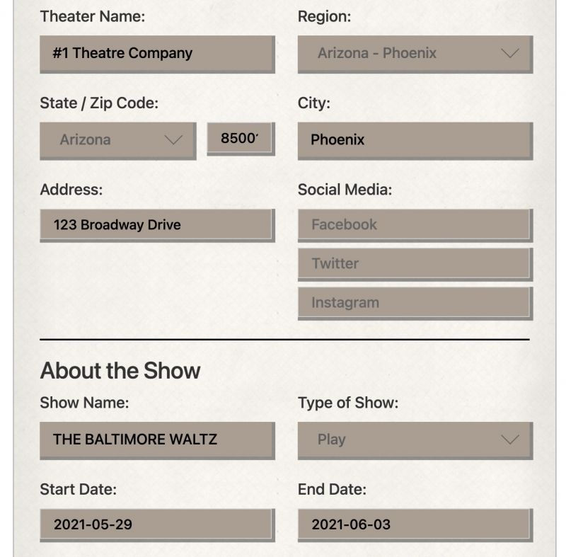 Creating a BroadwayWorld show listing? Let us do the work for you! Listing information, including show dates, theatre website, cast/creative team/etc., will automatically be applied to a FREE Stage Mag just for you. As soon as your listing is processed, you will receive a direct link (via email) to continue the editing process for your show program. Plus, information added to your Stage Mag will now be automatically added to your show listing.