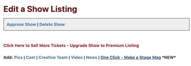 Show Listing to Stage Mag